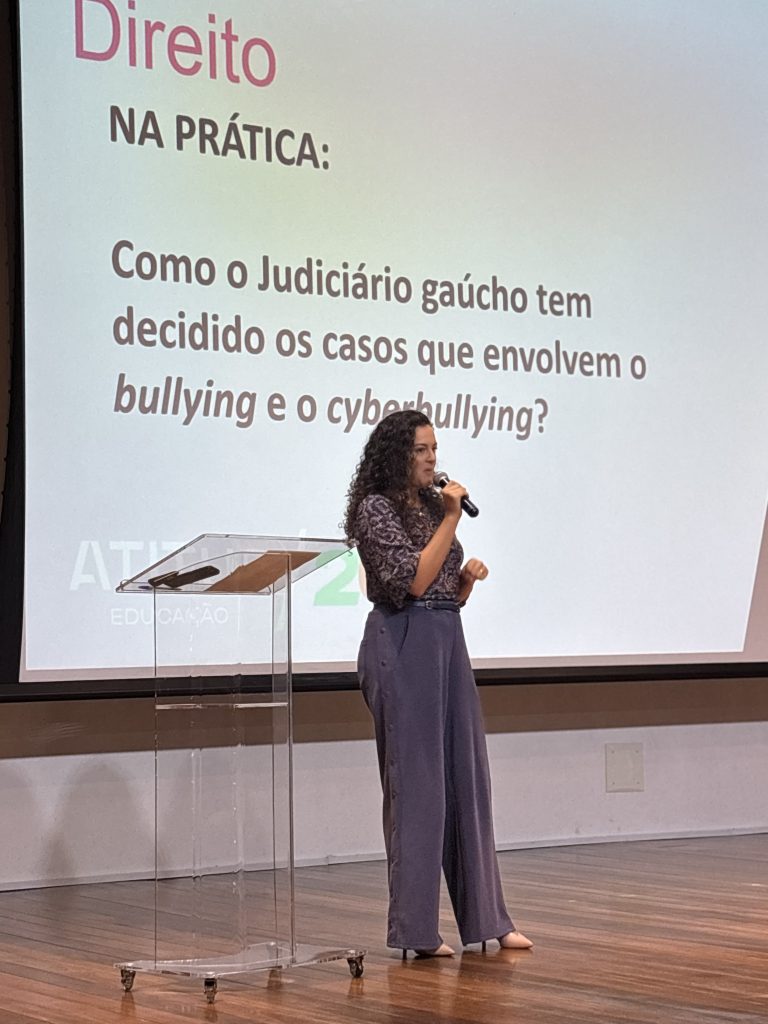 As questões jurídicas relacionadas ao Bullying foram abordadas pela Dra. Caroline D’Ávila e pelo Dr. Gustavo Santana, da Atitus Educação.